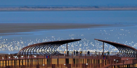 鸟们度假过中国新年,开始在鄱阳湖上聚集。