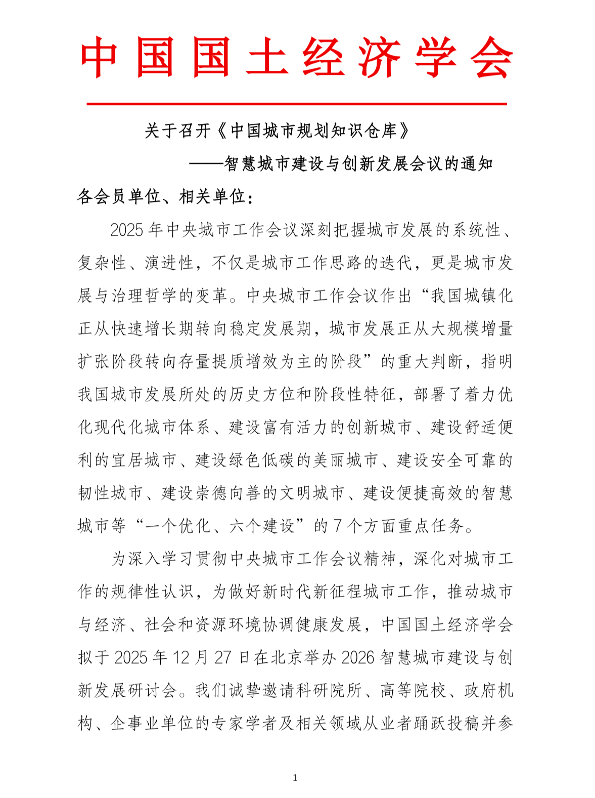 关于召开《中国城市规划知识仓库》——智慧城市建设与创新发展会议的通知