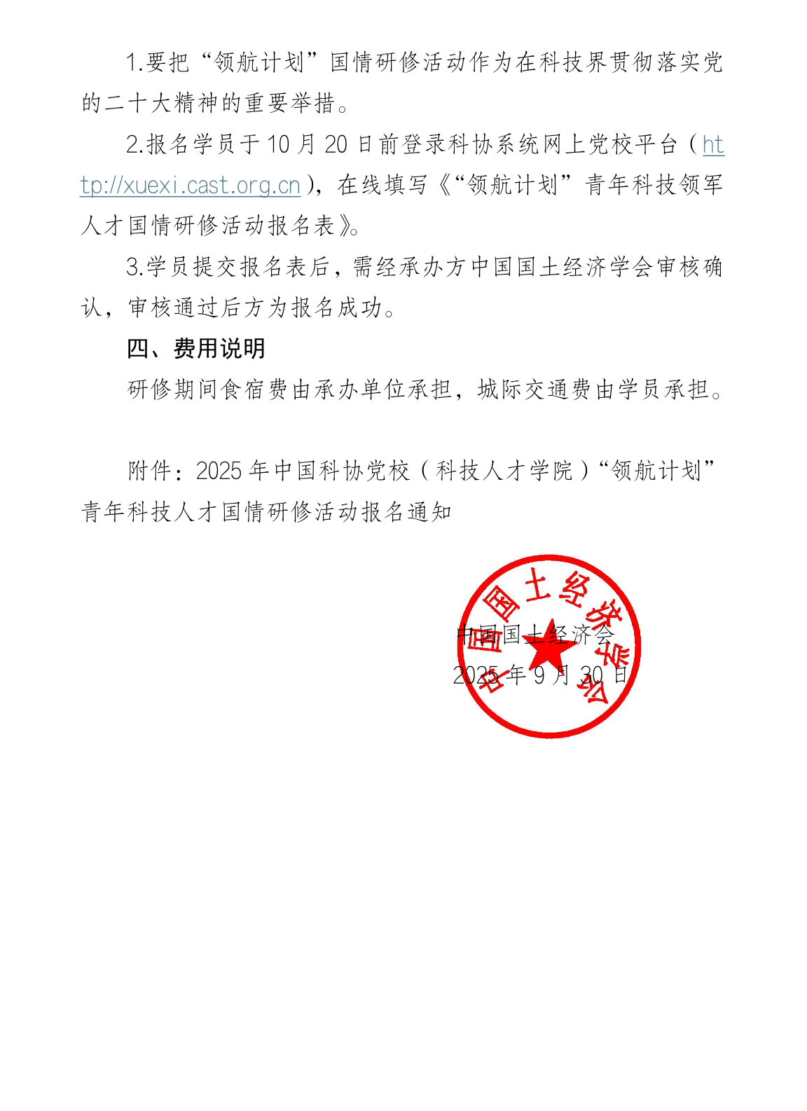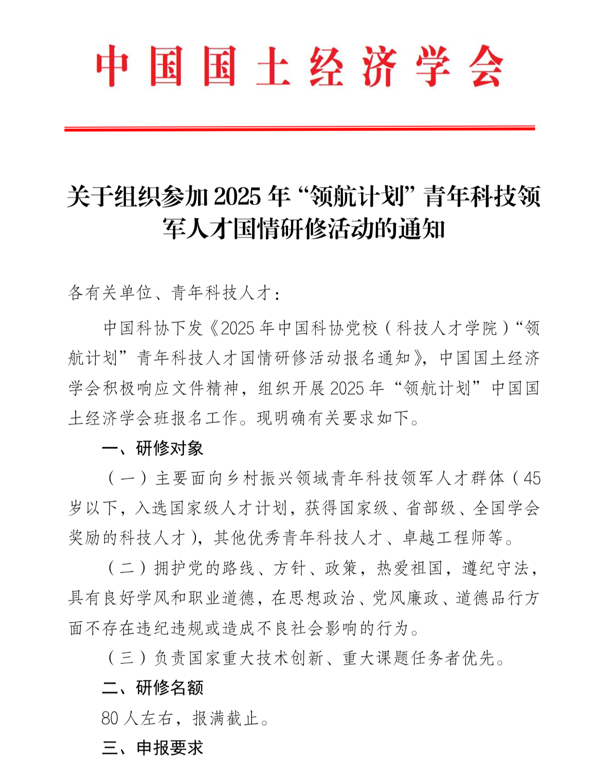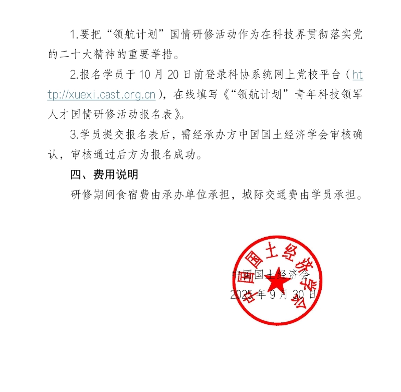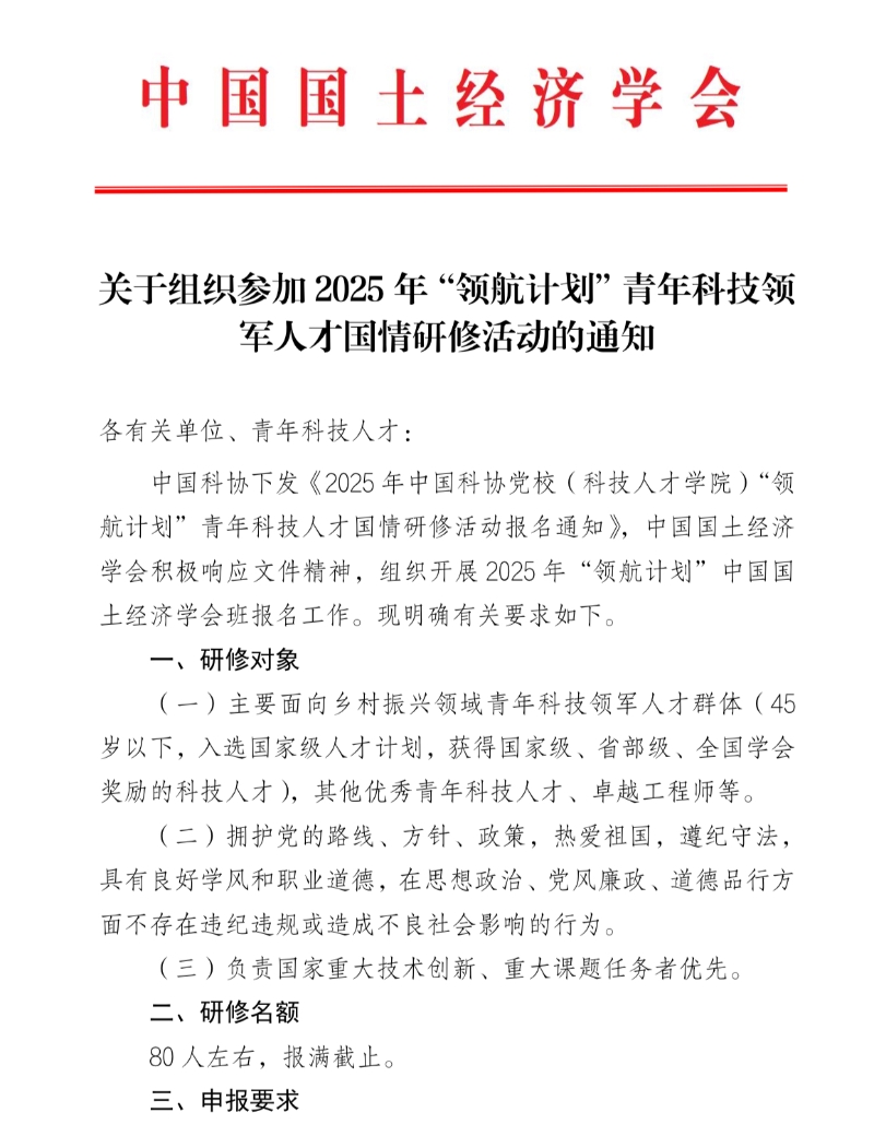 关于组织参加 2025 年“领航计划”青年科技领军人才国情研修活动的通知