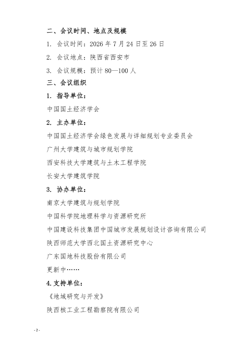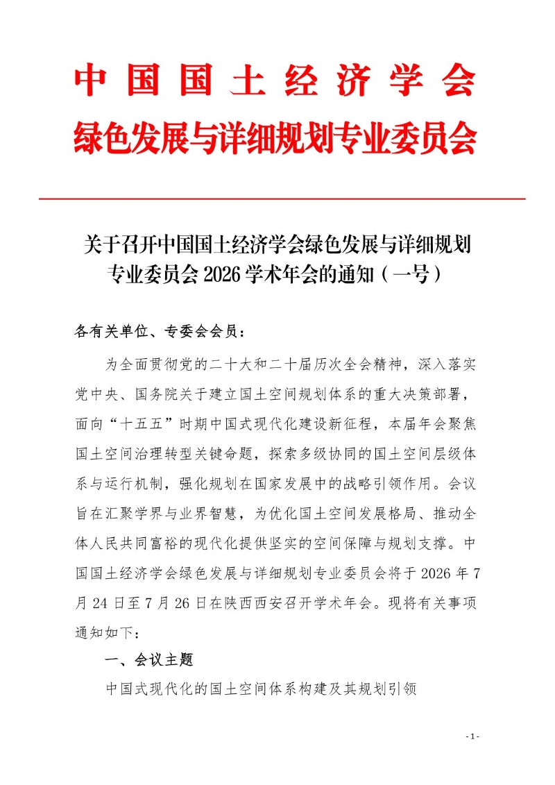 关于召开中国国土经济学会绿色发展与详细规划专业委员会 2026 学术年会的通知(一号)