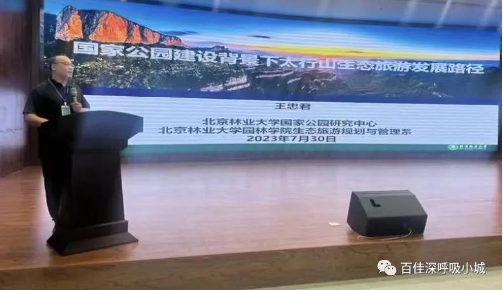 北京林业大学国家公园研究中心副主任王忠君阐述了“国家公园建设背景下太行山生态旅游发展路径”,认为在太行山作为国家公园候选区域,通过加快落实太自然保护地整合方案,推进国家公园体制实质性建设,形成由自然保护地向周边乡村、建制镇和城市延伸覆盖的城乡绿色基础设施网络,有助于太行山生态旅游的可持续发展。