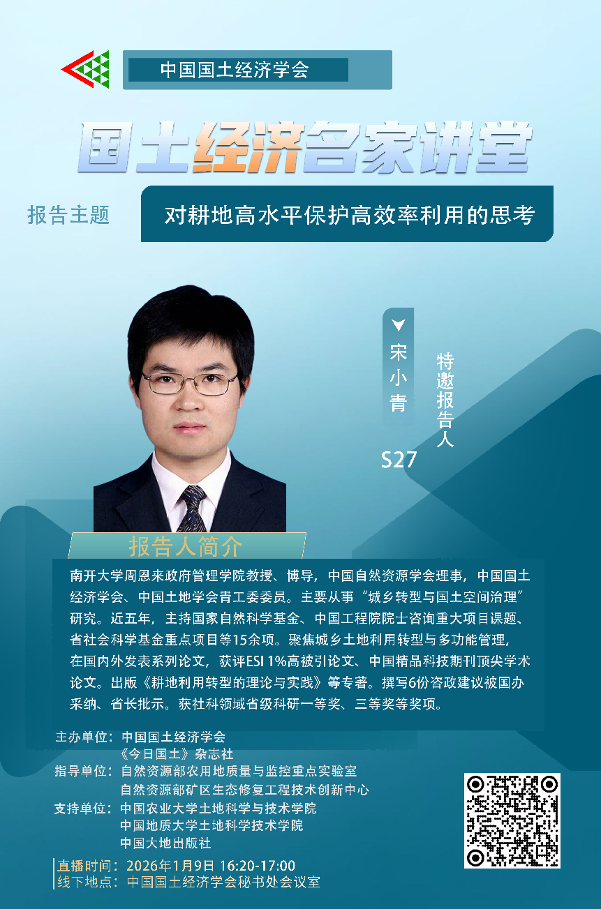 本网讯 1月9日,由中国国土经济学会、《今日国土》杂志社、中国城市知识仓库电子期刊共同主办的“国土经济名家讲堂”2026年第1期总第六十九、七十期在“线”顺利举行。