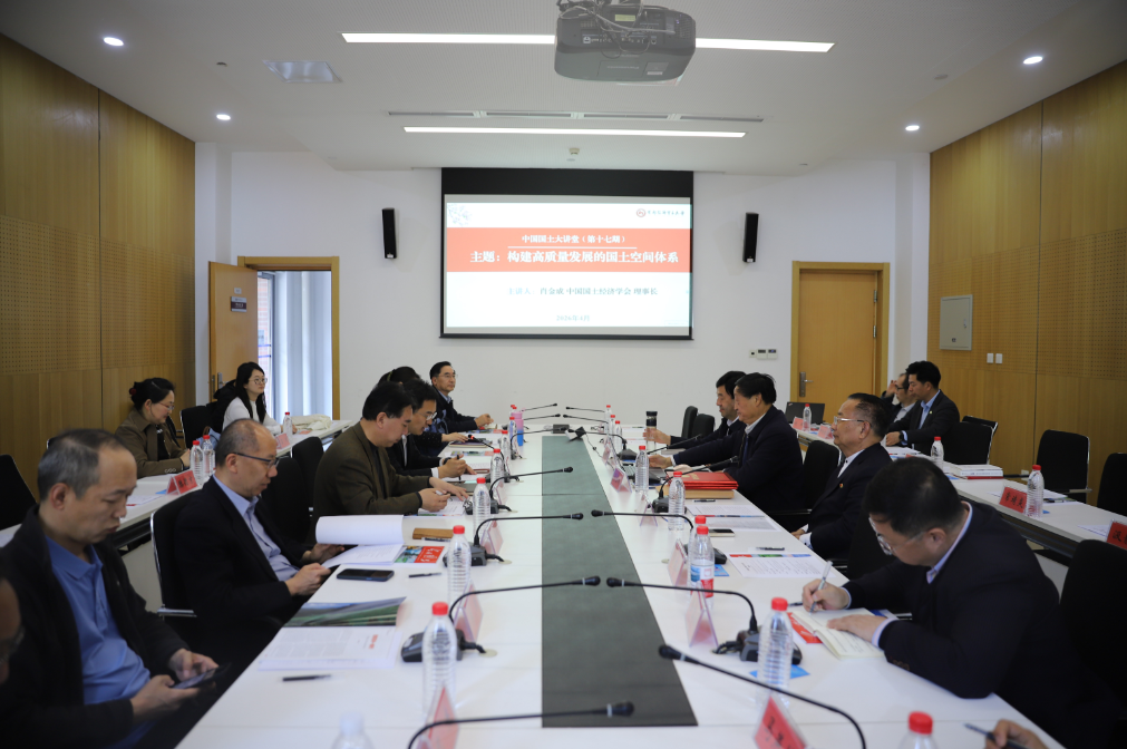 本网讯 2026年4月11日,由中国国土经济学会主办、首都经济贸易大学城市经济与公共管理学院承办的中国国土大讲堂第十七期在首都经济贸易大学举办。本期大讲堂以“构建高质量发展的国土空间体系”为主题,中国国土经济学会理事长、国家发改委国土开发与地区经济研究所原所长、中国宏观经济研究院二级研究员肖金成作主旨报告,来自相关领域的专家学者、师生及业界人士40余人参会。会议分主旨报告和学术交流两个环节。
